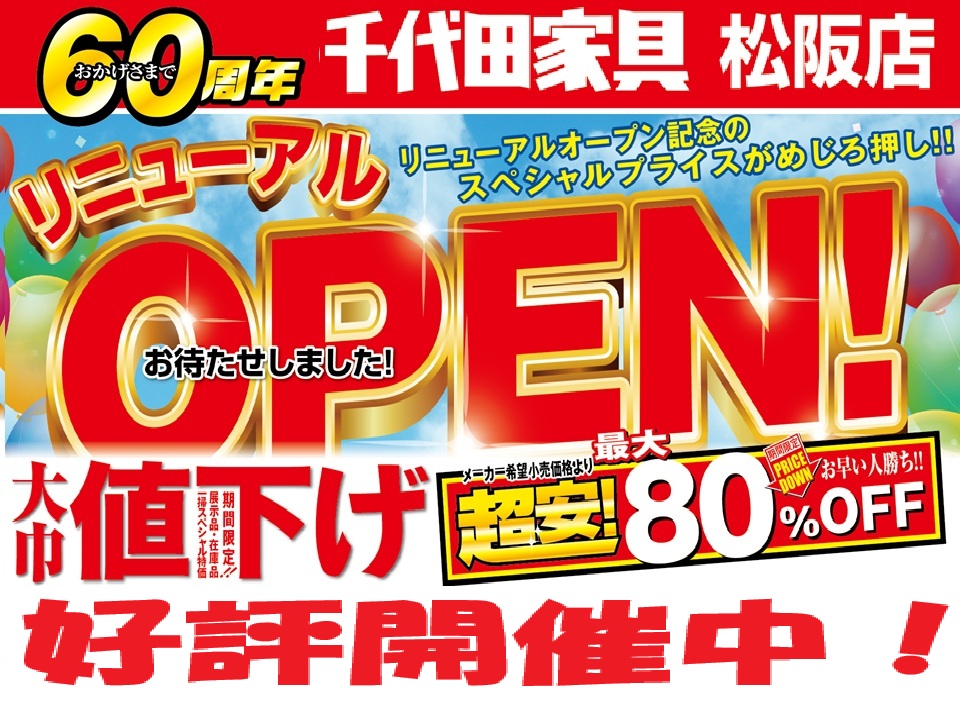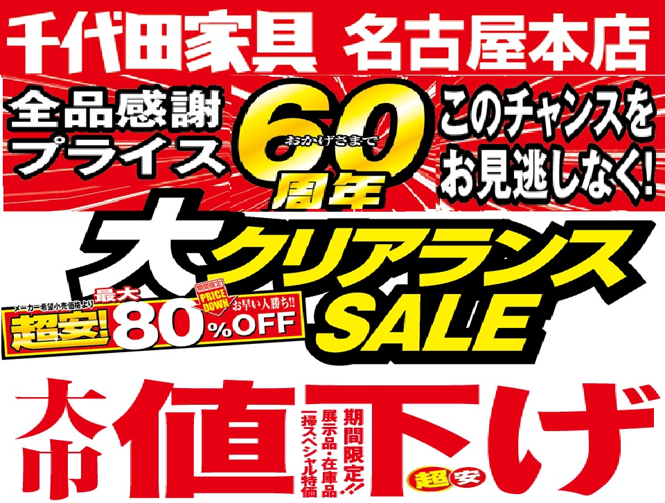 今年最後の60周年祭!大巾値下げお近くのお店はコチラから
