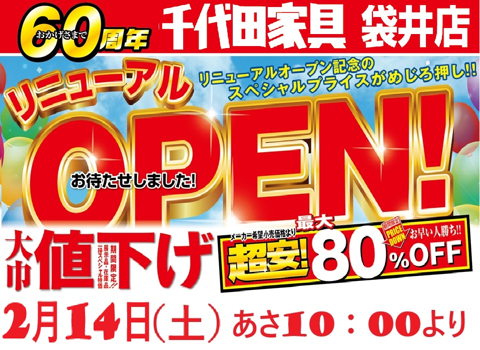 【千代田家具グループ店】家具のあさひ リニューアルセール2月7日(土)より開催!