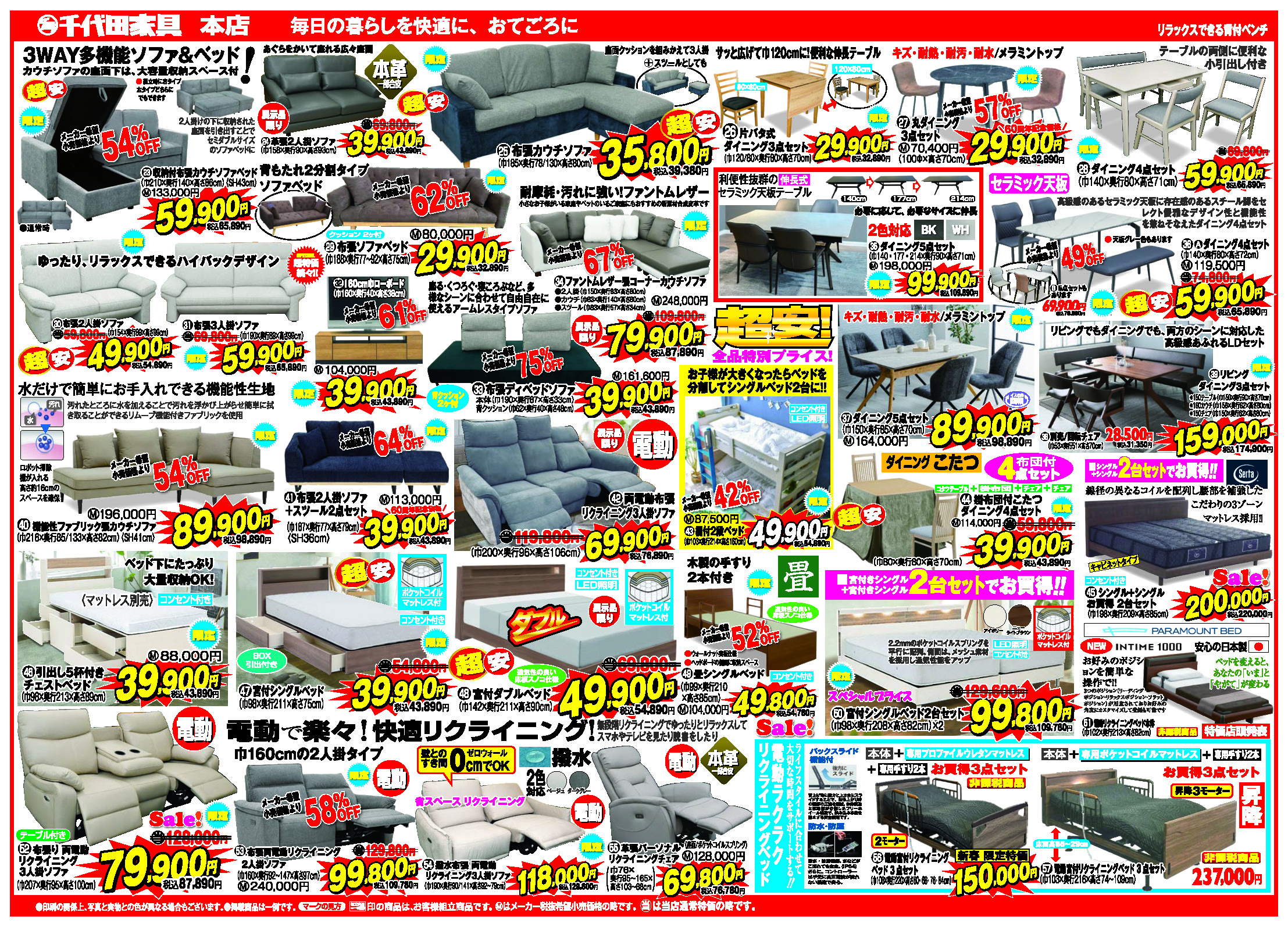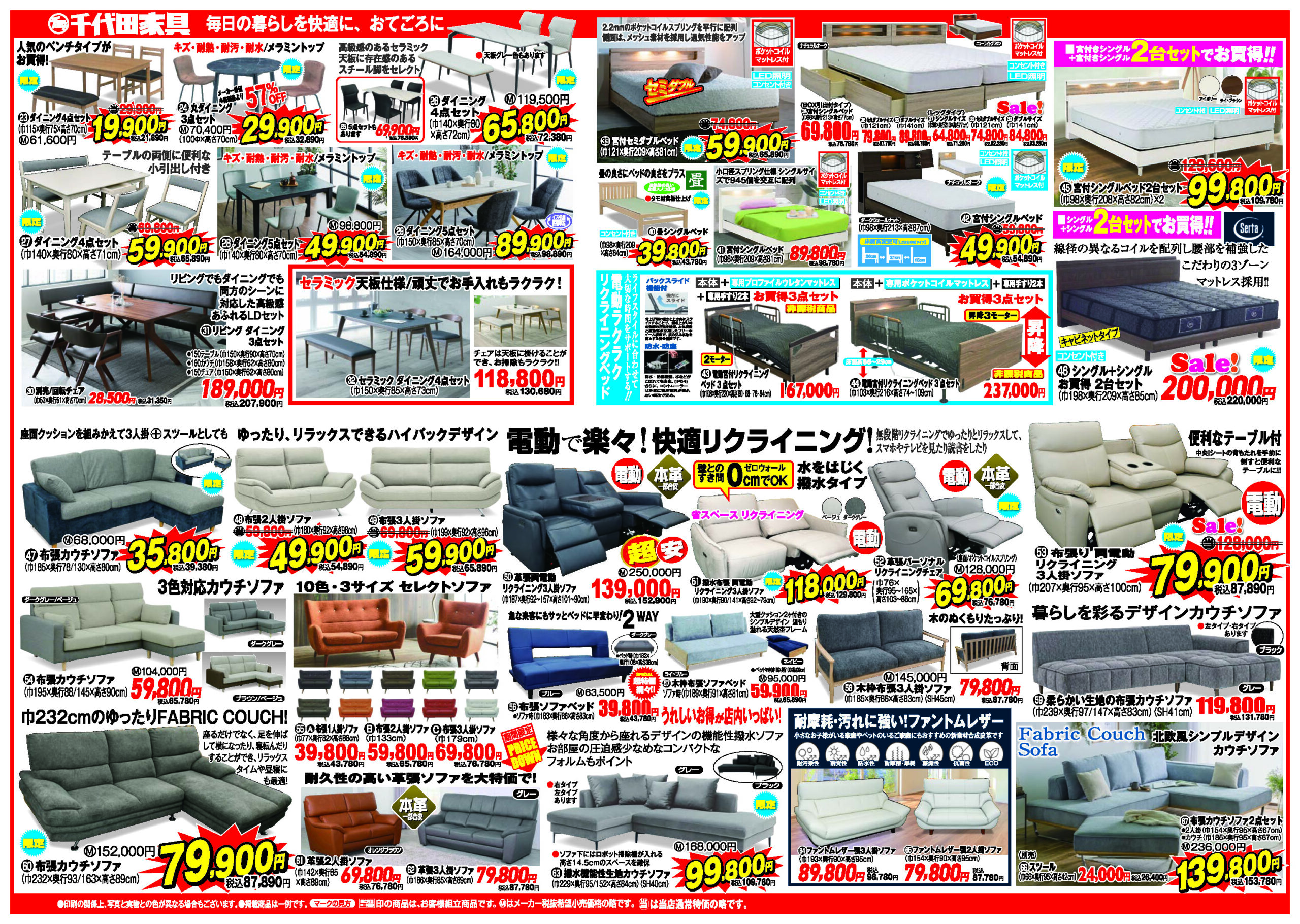 ☆毎日の暮らしを快適にするベッド・ソファー・ダイニングセットをお手頃価格でお届けいたします